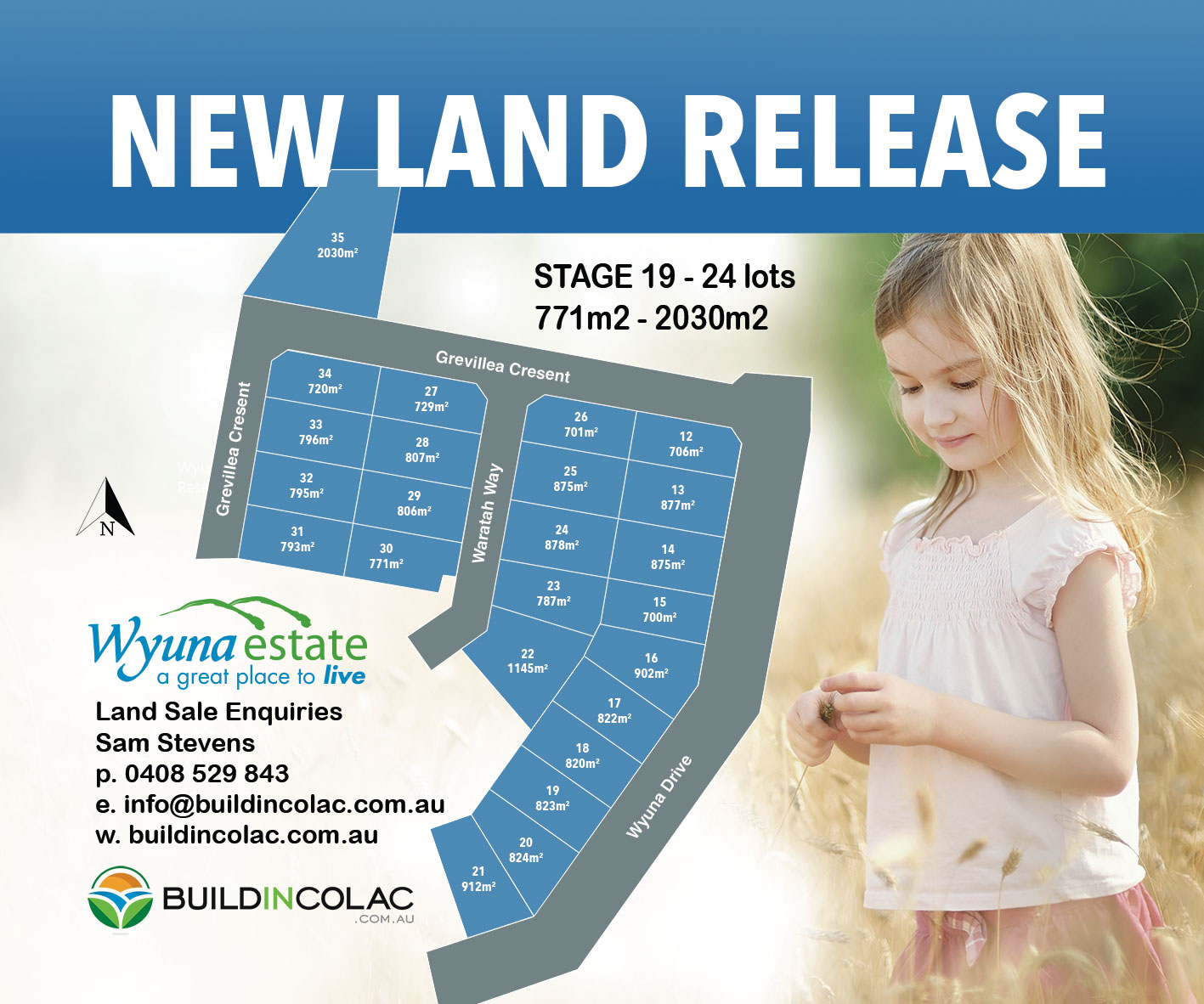 Land Sale Enquiries to Sam Stevens sam@buildincolac.com.au